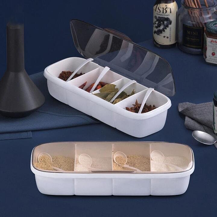 A versatile seasoning storage solution featuring three separate compartments for organizing spices, complete with a convenient design and available in various colors.