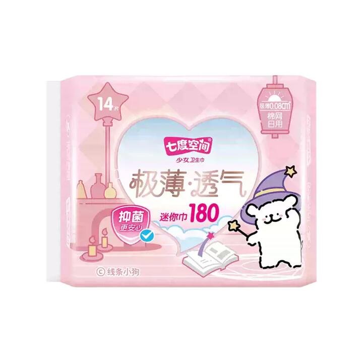 Designed for light-flow days and everyday freshness, Space 7 Teen Series Mini Day Pads combine an ultra-thin 0.08 cm profile with a breathable cotton-mesh top sheet for airy comfort. This cute collaboration pack features 14 pads at a compact 180 mm length—discreet, soft, and easy to carry. Product Highlights: Ultra-Thin Comfort: As thin as 0.08 cm for a barely-there feel. Breathable Mesh Top Sheet: Cottony, quick-dry surface helps keep you fresh. Mini 180 mm Size: Ideal for light days, spotting, or tampon backup. Secure & Flexible: Strong adhesive and flexible fit move with you. Limited Collaboration: Adorable Doodle Dog design, 14 pads per pack. Space 7 is a popular feminine care brand from China’s Hengan Group, known for comfy, teen-friendly designs.