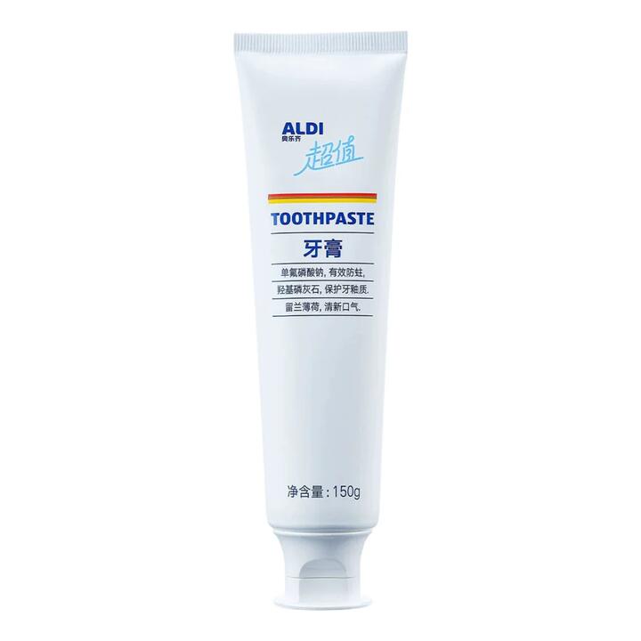 Keep your smile bright with ALDI’s Value Fresh Mint Anti-Cavity Toothpaste. Formulated with fluoride (sodium monofluorophosphate) to help prevent cavities, it gently polishes for a cleaner feel while protecting enamel. Fresh spearmint leaves breath feeling clean and confident. Imported from ALDI China as a limited run. Product Highlights: Fluoride Protection: Sodium monofluorophosphate helps fight cavities and strengthen enamel. Gentle Polishing: Cleans and smooths tooth surfaces for a fresh, just-brushed finish. Enamel Care: Formulated to help protect and maintain enamel. Fresh Spearmint: Long‑lasting minty breath. Generous Size: 150 g family-friendly tube.
