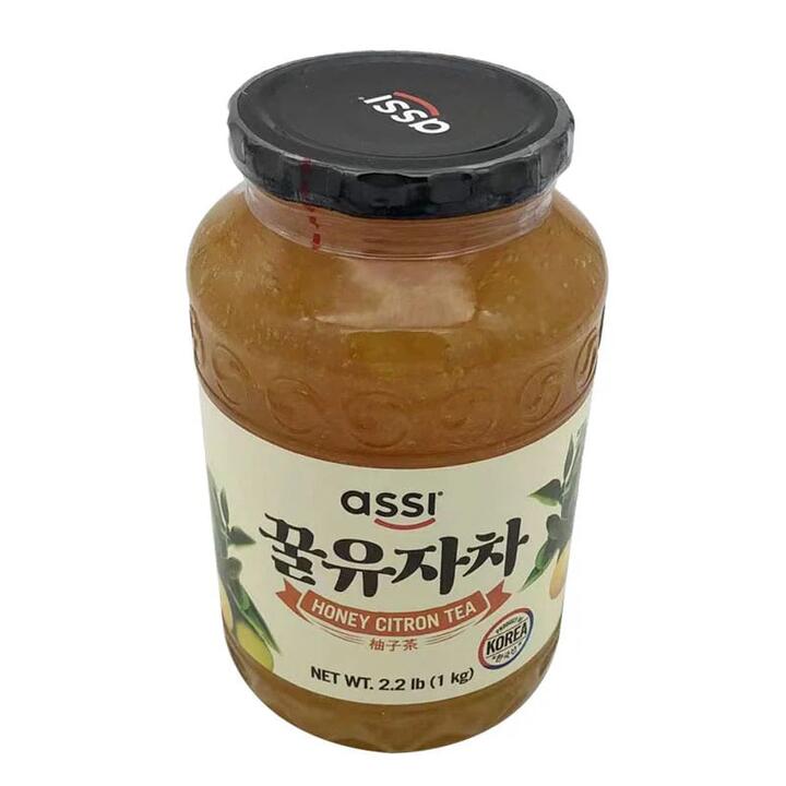 Enjoy the delightful taste of Assi Honey Citron Tea, a traditional Korean tea made with real citron and honey. This 1kg jar is perfect for making a refreshing and soothing beverage that can be enjoyed hot or cold. Product Highlights: Authentic Flavor: Made with real citron and honey for a genuine taste. Versatile Use: Can be enjoyed hot or cold, perfect for any season. Rich in Vitamin C: Citron is a great source of Vitamin C, promoting health and wellness. Convenient Packaging: Comes in a 1kg jar, ideal for multiple servings. Traditional Korean Tea: Experience the authentic taste of Korean honey citron tea.