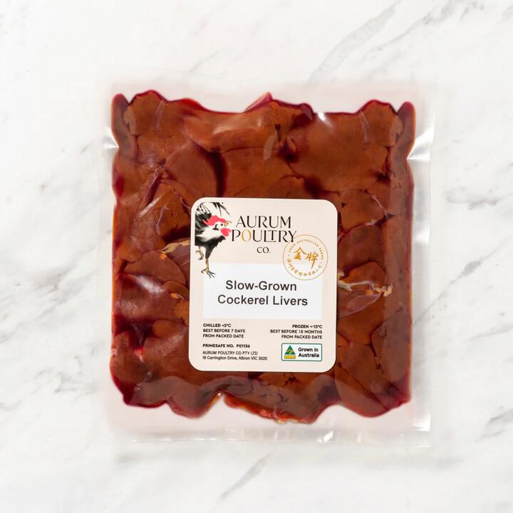 Indulge in the rich, buttery taste of Aurum Poultry Slow-Grown Cockerel Livers. Each 250g pack is vacuum-sealed and blast-frozen to preserve the delicate texture and full flavour, making it a gourmet choice for pâtés, sautés, and hearty stews. Product Highlights: Slow-Grown Quality: From naturally raised cockerels for superior tenderness. Rich & Buttery Flavour: Ideal for creating smooth pâtés or pan-seared delicacies. Australian Origin: Responsibly farmed and processed in Australia. Convenient & Clean: Pre-trimmed, vacuum-sealed, and ready to cook. Flash-Frozen Freshness: Locks in nutrients without added preservatives.