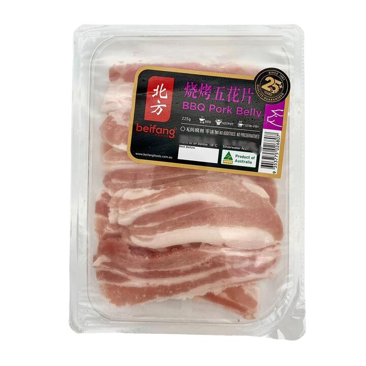Succulent slices of Beifang-style BBQ pork belly, frozen for freshness and convenience. Perfect for grilling or roasting, these 225g packs offer a quick and delicious meal option.