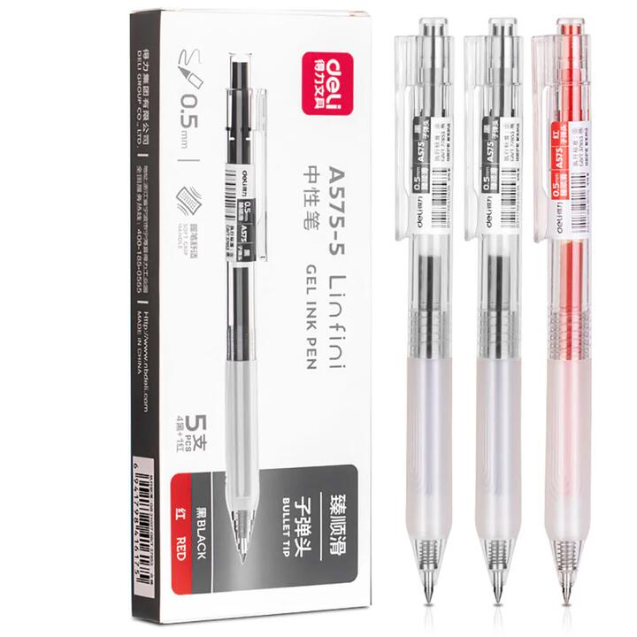 Deli Linfini Smooth Gel Ink Pens – 0.5mm, Mixed Colors, 5-Pack