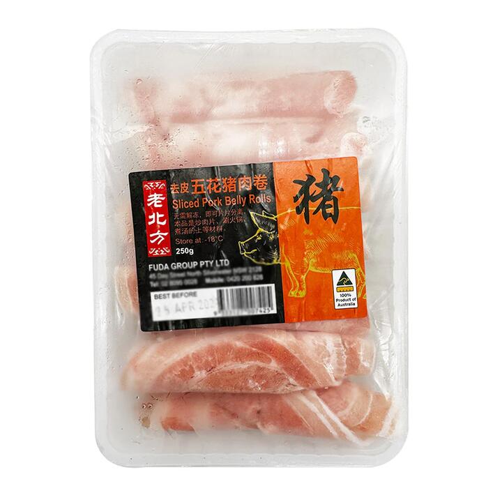 These are frozen, skinless pork belly rolls from Old Beifang, weighing 250g. Perfect for a variety of dishes, they offer a rich, succulent flavor and are easy to cook straight from the freezer.