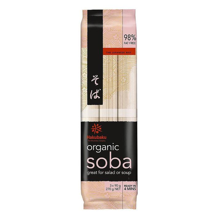 Experience the authentic taste of Japan with Hakubaku Organic Soba Noodles, a healthy and delicious choice for your meals. Made from organic ingredients, these soba noodles are 98% fat-free and perfect for salads or soups. Each pack contains 270g of noodles, divided into three convenient 90g portions, ready to cook in just 4 minutes. Enjoy the rich, nutty flavor and smooth texture of these premium soba noodles, ideal for a variety of dishes. Elevate your culinary creations with Hakubaku Organic Soba Noodles, a staple in Japanese cuisine.