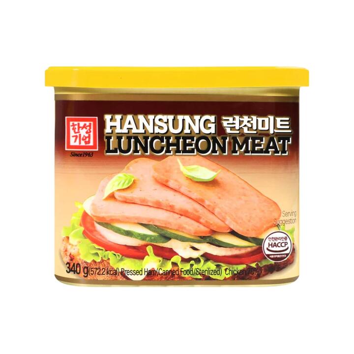Hansung Korean-Style Chicken Luncheon Meat brings a mild, savory taste with a smooth, springy bite—perfect for quick pan-frying to top rice, ramen, sandwiches, or kimbap. This sterilized, shelf-stable canned meat offers everyday convenience without sacrificing flavor. Founded in 1963, Hansung is a trusted Korean brand known for quality canned and processed foods. Product Highlights: Korean-Style Flavor: Balanced savory profile that shines when lightly pan-fried. Chicken-Based: Tender texture ideal for slicing, cubing, or layering in sandwiches and kimbap. Quick & Versatile: Ready to slice—great for fried rice, ramen toppings, breakfast plates, and snacks. HACCP Certified: Sterilized canned meat for safe, reliable quality. Convenient Size: 340 g can suitable for meals at home or meal prep.