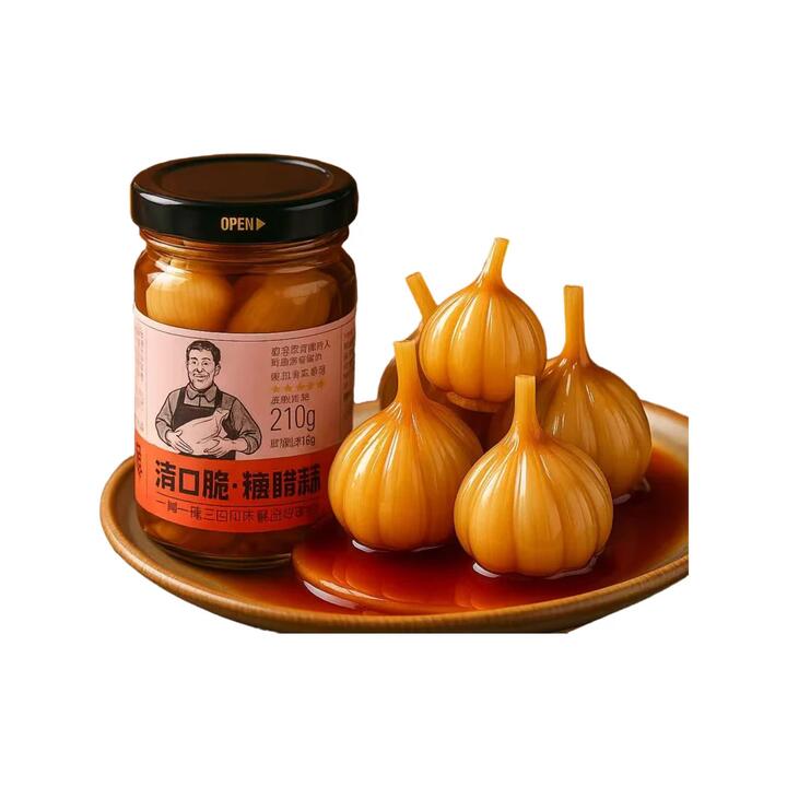 Haosuan Dao Sweet & Sour Pickled Garlic – Crunchy & Refreshing 210g – Chinese Sugar-Vinegar Pickled Garlic