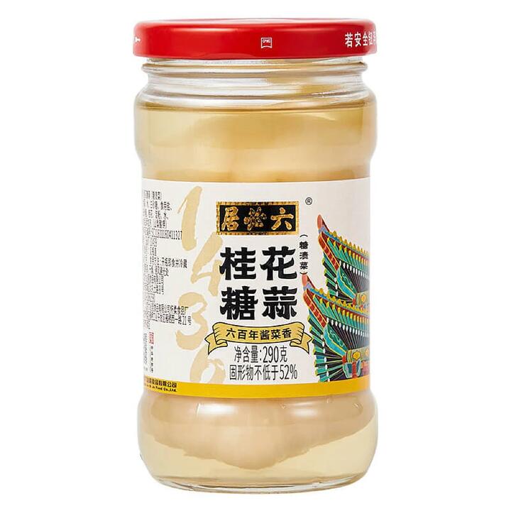 Liubiju Candied Osmanthus Garlic 290g – A unique and flavorful combination of sweet osmanthus and savory garlic, perfect for adding a twist to your dishes. Made with high-quality ingredients and traditional methods for an authentic taste experience.
