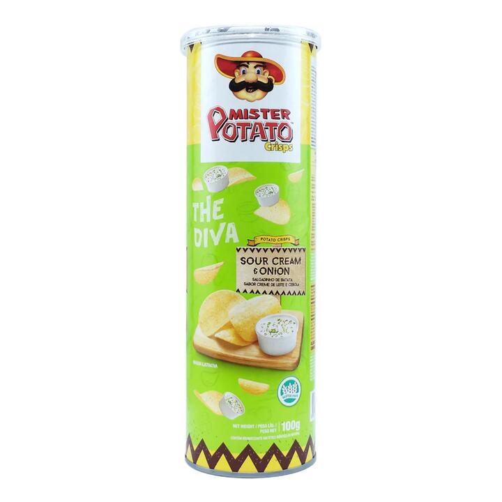 Enjoy the crunchy goodness of Mister Potato Sour Cream & Onion Potato Crisps. Crafted from premium potatoes and seasoned with a creamy sour-cream-and-onion blend, these stacked chips deliver mouth-watering flavour in every bite. The handy 100g canister keeps each crisp fresh and ready for on-the-go snacking. Product Highlights: Classic Flavour: Tangy sour cream paired with savoury onion. Quality Ingredients: Made from real potatoes for authentic taste. Neatly Stacked: Uniform crisps for mess-free enjoyment. Resealable Canister: Keeps chips fresh and crunch intact. Perfect Anytime Snack: Great for parties, road trips, and movie nights.