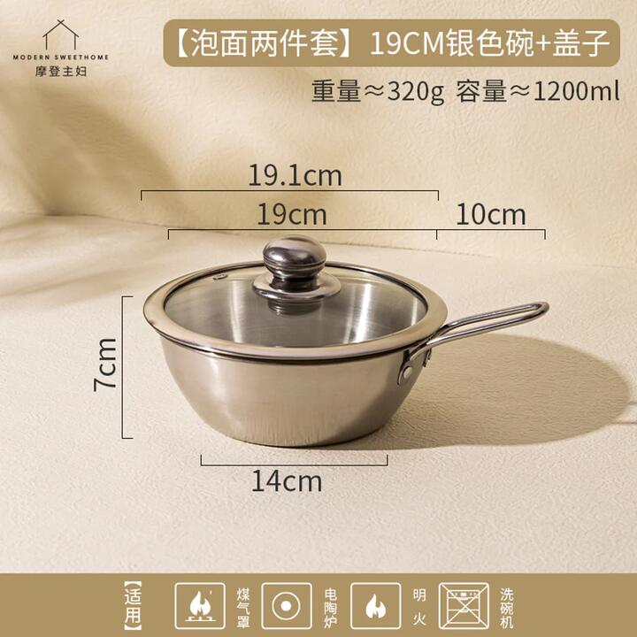 Modern Housewife Korean Style Noodle Pot with Lid – Silver 19cm