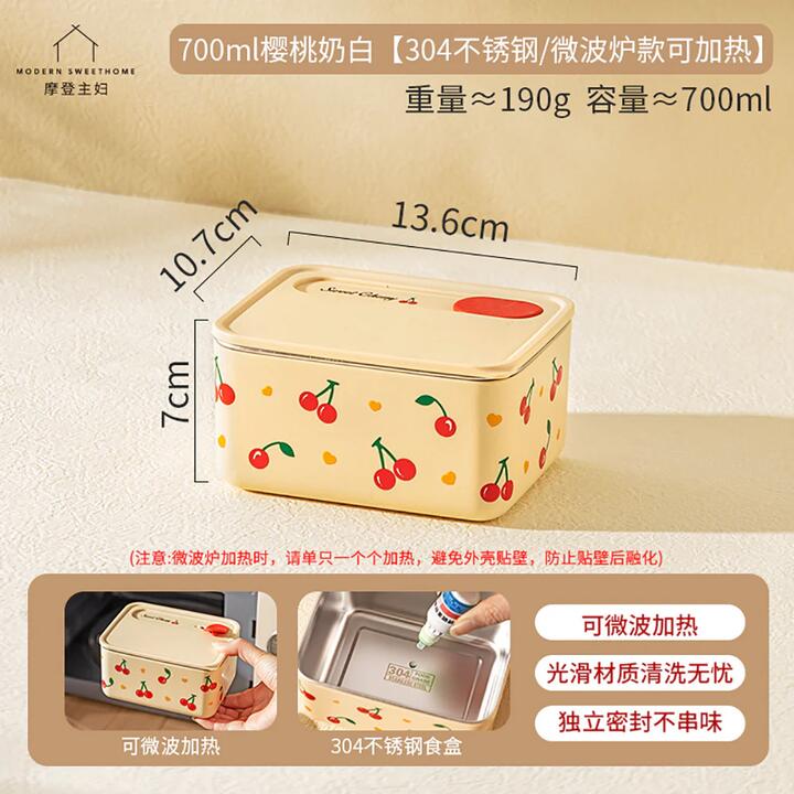 Modern Sweet Home 304 Stainless Steel Insulated Lunch Box – Cherry White 700ml, Microwaveable