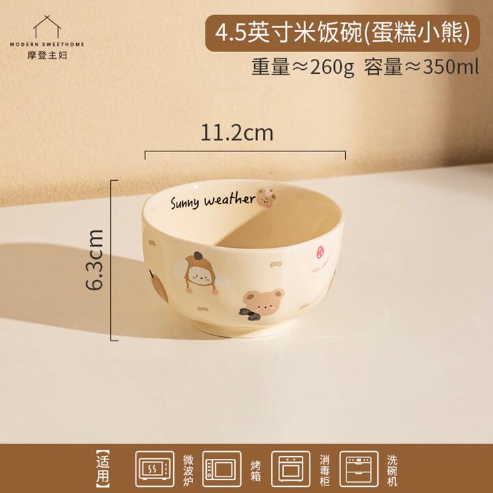 Modern Sweethome 4.5-Inch Ceramic Rice Bowl – Cute “Cake Bear” Pattern, 350 ml