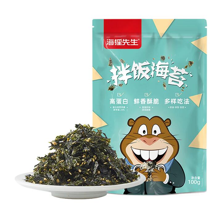 Enhance your meals with Mr. Beaver Seasoned Seaweed for Rice, packed in a convenient 100g package. This high-protein seaweed is mixed with aromatic sesame seeds, providing a fresh and savory flavor to your rice dishes. Made with simple ingredients and free from artificial preservatives, it ensures a healthy and enjoyable eating experience. Non-fried and carefully selected to retain its original taste, this seaweed is perfect for various culinary uses. Enjoy it as a topping for rice, in onigiri, or as a snack, and savor the premium quality of Mr. Beaver Seasoned Seaweed.