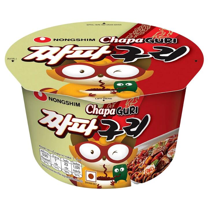 Enjoy the delicious and savory taste of Nongshim ChapaGuri Jjajang Udon Bowl Noodles. This 114g bowl features thick udon noodles paired with a rich and flavorful black bean sauce. Perfect for a quick and satisfying meal, these noodles are easy to prepare and full of authentic Korean flavor. Simply add hot water, wait a few minutes, and enjoy a hearty bowl of jjajang udon noodles. Ideal for lunch, dinner, or a convenient snack, Nongshim ChapaGuri Jjajang Udon Bowl Noodles bring the taste of Korea to your table.