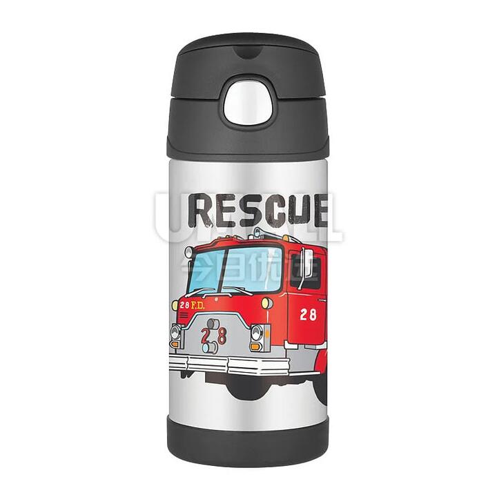 THERMOS Stainless Steel Vacuum Insulated Straw Bottle – Fire Truck Design, Black, 355ml