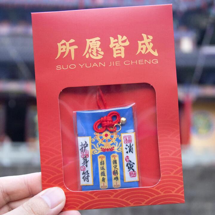 Carry a touch of blessing with the Ulife Golden Wheel Protection Amulet Charm, a traditional-style talisman symbolising the dispelling of misfortune and inviting good luck. The embroidered blue pouch features a braided red cord and a small bell, easy to hang on your bag, keys, car mirror or at home. Product Highlights: Symbolic Protection: Golden Wheel motif represents warding off bad luck and welcoming fortune. Ready to Hang: Comes with a red braided cord and bell. Versatile Use: Perfect for bags, cars, entryways or desktops. Gift-Ready Presentation: Packaged on a festive backing card for easy gifting. Lightweight & Durable: Fabric charm suited for everyday carry.