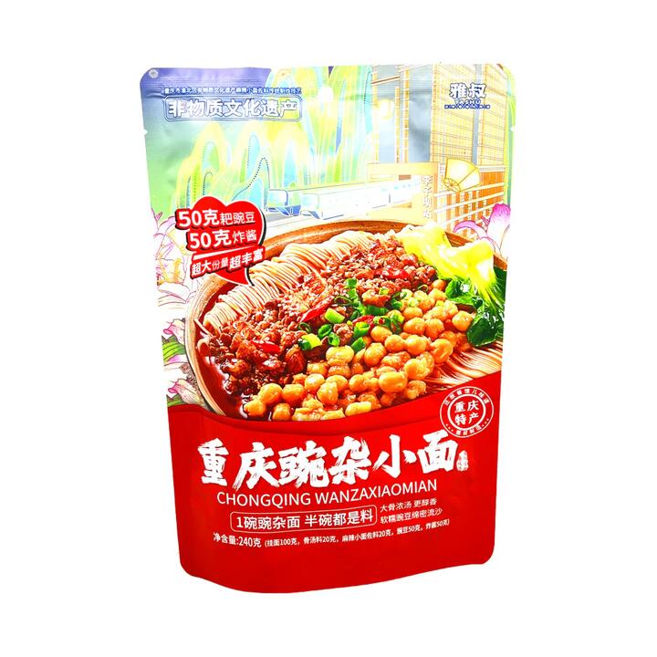 Yashu Chongqing Wan Za Xiao Mian Pea & Minced Pork Instant Noodle Kit 240g – Spicy Sichuan-Style Dry Noodles