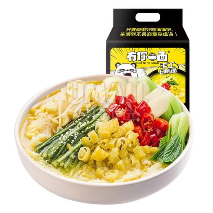 You Ni Yi Mian Handcrafted Sun-Dried Noodles – Spicy & Sour Golden Soup Flavor, 135g x 4 Packs